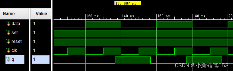 同步和异步复位电路在Verilog代码中的设计区别在于,同步复位仅仅在时钟信号clk上升沿有效,即clk上升沿信号来时set和reset信号才有效。异步复位则是不论始终信号何时到来只要set和reset信号改变都会引起q值的变化。故在Verilog代码设计同步和异步复位电路是只需要改变当set和reset信号改变时也引起输出值的改变即可将同步改为异步触发器。