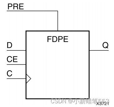 FDPE:D Flip-Flop with Clock Enable and Asynchronous Preset 带有时钟使能和异步置位的D触发器 ,相比于FDSE不需要等到时钟的上升沿,即刻可进行置位。