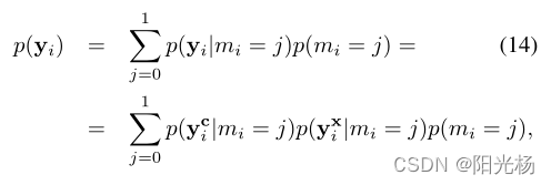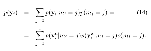 c表示前景/背景的颜色直方图c = {cf,cb}。mi ∈ {0,1}是表示未知前景/背景标签的随机变量。(我认为这里的m跟掩码的原理差不多,目标出为1,背景处为0)