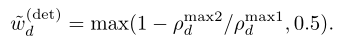 表示的是基于通道响应中第二个和第一个最高非相邻峰值之比,这两个最大峰值是在3×3非最大值抑制后获得的两个最大值。该比率不利于多个相似物体出现在目标附近的情况,所以为了解决这种情况,不允许最终值低于0.5。