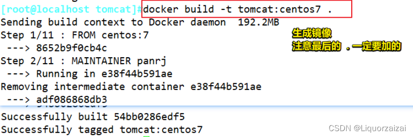 docker build -t httpd:centos . (注意别忘 了末尾有".",且.前面有空格)//新镜像运行容器