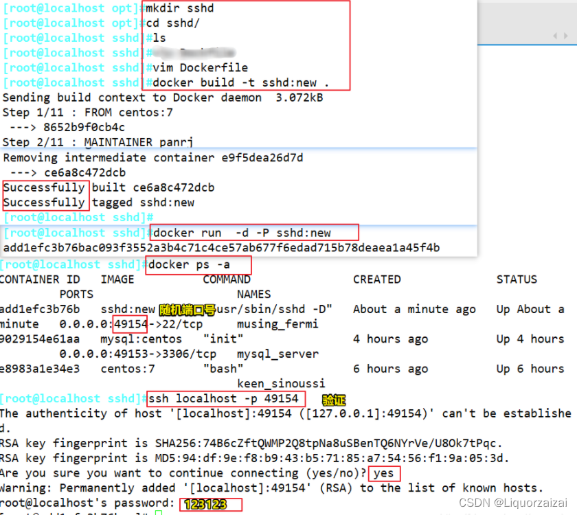 CMD ["/usr/sbin/sshd","-D"]//生成镜像