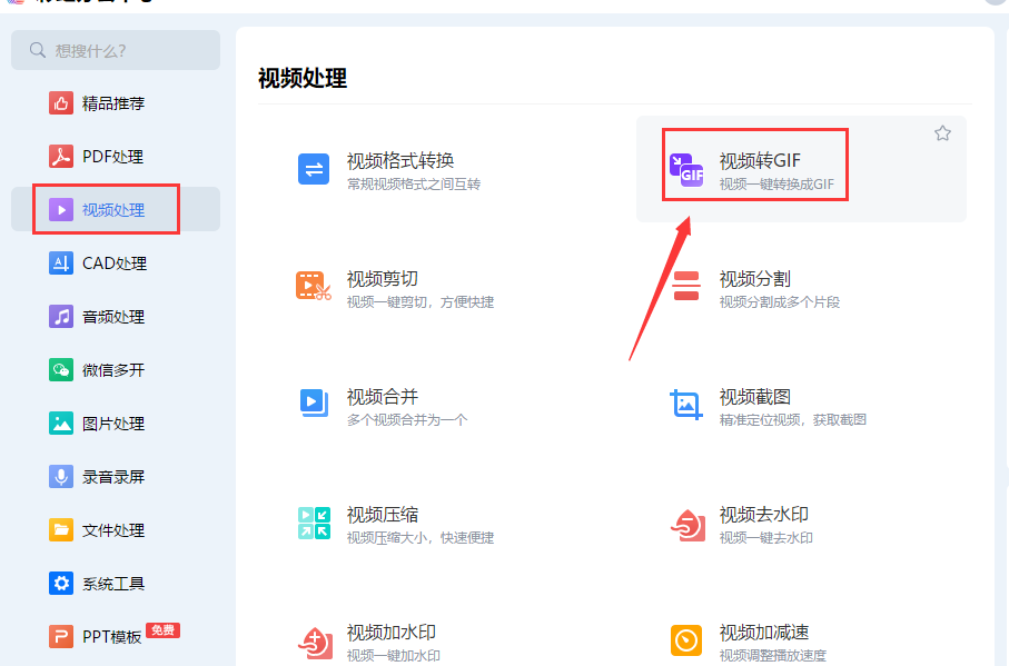 步骤1,在使用该工具之前,请先进行安装。安装完成后,打开软件,即可直接看到各种功能菜单。在首排中,您可以点击“视频转GIF”功能选项,进入下一步操作。这一过程非常简单明了,只需按照上述步骤进行操作即可。