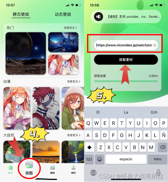 点击下面的【存图】,把链接粘贴上去,点获取素材