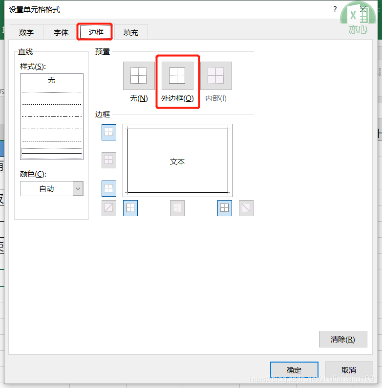 ④然后设置边框,并选择外边框,点击确定,完成规则添加。