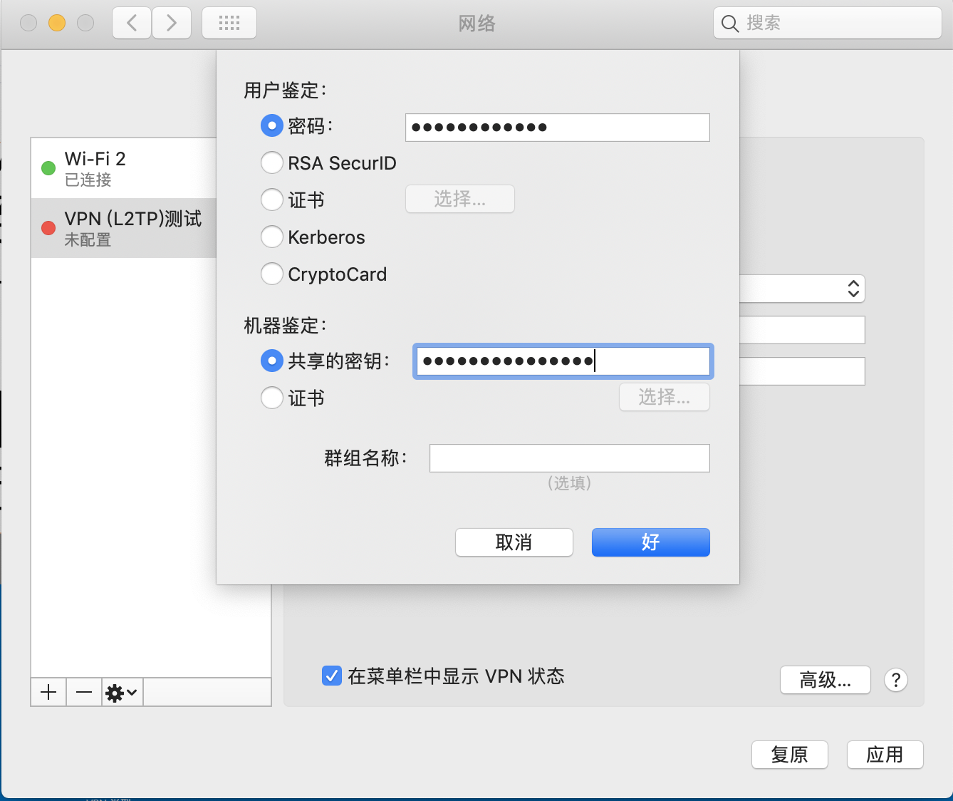 在苹果电脑上建立建立L2TP通道并解决`L2TP-***服务器没有响应`的问题