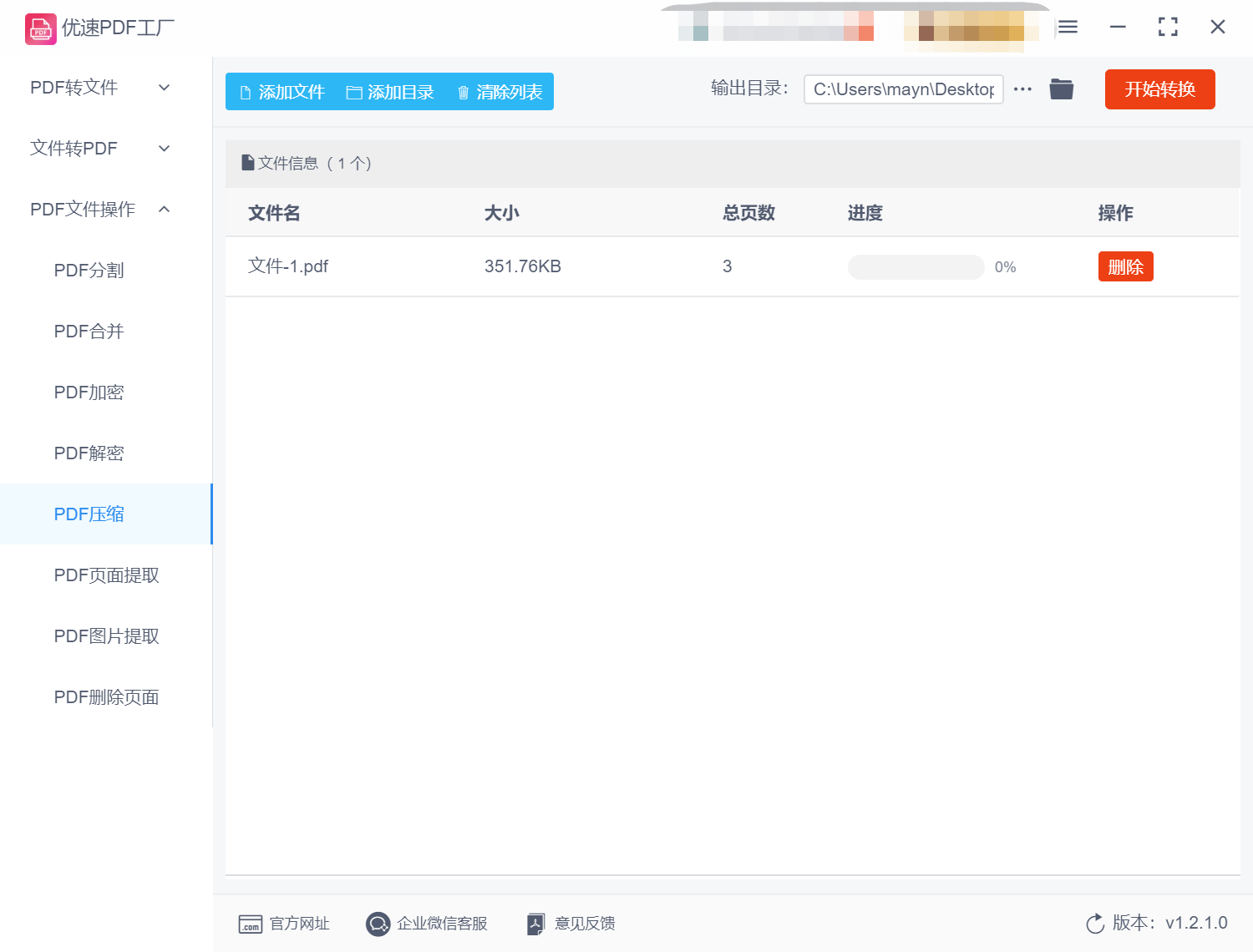步骤2、选择需要压缩的PDF文件进行相关的设置后,点击【开始压缩】即可。这个时候,pdf文件就已经压缩完成了。