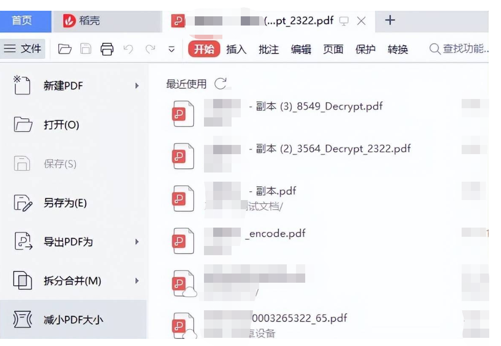 步骤1、wps使用范围较为广泛,在wps中,我们也可以借助其功能,将pdf文件进行压缩。打开wps之后,在文件下拉栏中点击“减小PDF大小”的按钮。