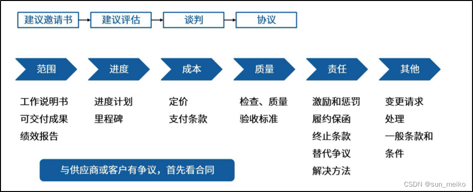 - 作用:选定合格卖方并签署关于货物或服务交付的法律协议。最后成果是签订的协议,包括正式合同。