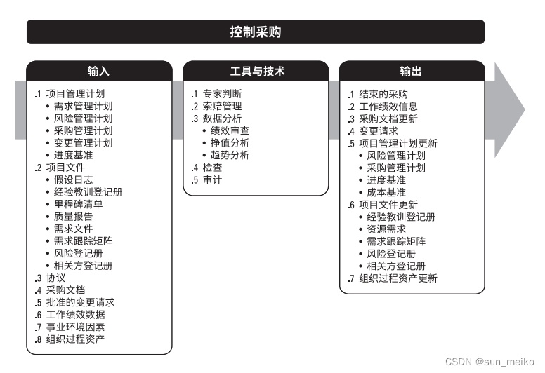 - 管理采购关系,监督合同绩效,实施必要的变更和纠偏,以及关闭合同的过程.