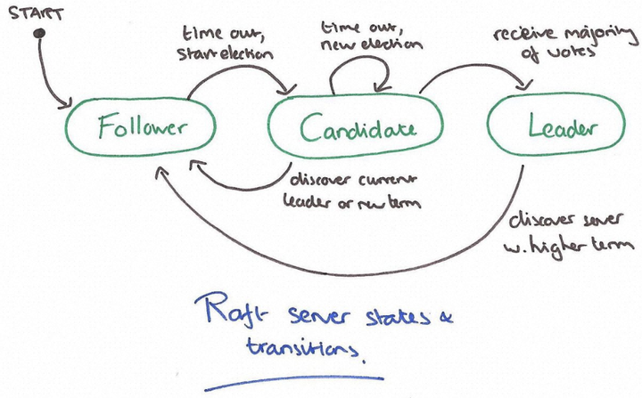 图6. Raft着重简化设计,单独剥离出来的选举算法主要依赖随机超时机制