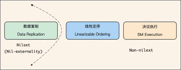 「异步共识」这里其实蕴含有一个强假设,实际分布式系统中,是否存在这样的写请求,它不需要即时执行状态机,只要确保该请求被持久化了就可以返回。咋一听还是有些反直觉的,不过事实上实际存储系统中这类写请求接口并不少见。最典型的是Key/Value存储系统,譬如Put接口,并不需要即时APPLY,即返回客户端的时候并不需要告知相应的KEY是否已经存在;譬如Delete接口,也并不需要即时APPLY,即返回客户端的时候并不需要告知相应的KEY是否并不存在。业界类似的系统,包括有RocksDB,LevelDB等LSM-Tree结构的存储系统,还有Memcached里面的Set请求,ZippyDB里面的Put/Delete/Merge等主要接口均是如此。认识到这些,相信读者朋友们也会认同「异步共识」的出发点,也能够看清「异步共识」想要打的靶子。