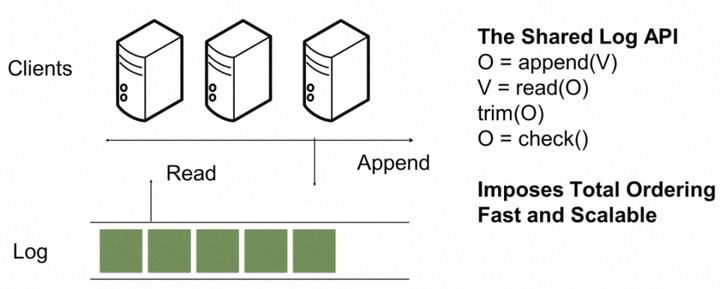- Distributed Journal:LSM-Tree在现代存储系统中得到了广泛应用,该这里面关键的journaling机制很好地解决了写放大问题,每次仅持久化增量的更改数据,而不需要全量数据持久化,同时通过严格顺序写入的设计大幅提升了写入性能,对于写多读少的场景尤其的友好。在分布式场景下,journaling也会升级为一个append-only的分布式日志系统,类似GFS、HDFS等等。这正是Share Log主打场景。根据业务请求是否需要即时外显,又细分出两个场景:1)要求即时外显,那么这里的append-only的分布式日志系统必须单写,即同一时间某个文件最多只允许一个客户端操作,否则状态机APPLY的请求序列与持久化的日志序列可能不一样,failover场景下数据一致性将被打破。此时分布式日志对日志的需求是持久性(durability),外显性(externality),唯一定序(uniquely ordered),以及线性定序(linearizability);2)不要求即时外显,这里的append-only的分布式日志系统需要支持多写定序,最大程度提升访问吞吐,降低请求延迟。此时分布式日志对日志的需求是持久性(durability),可定序(orderable)以及线性定序(linearizability);