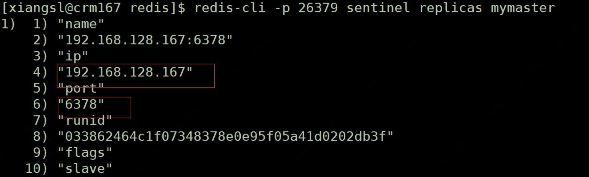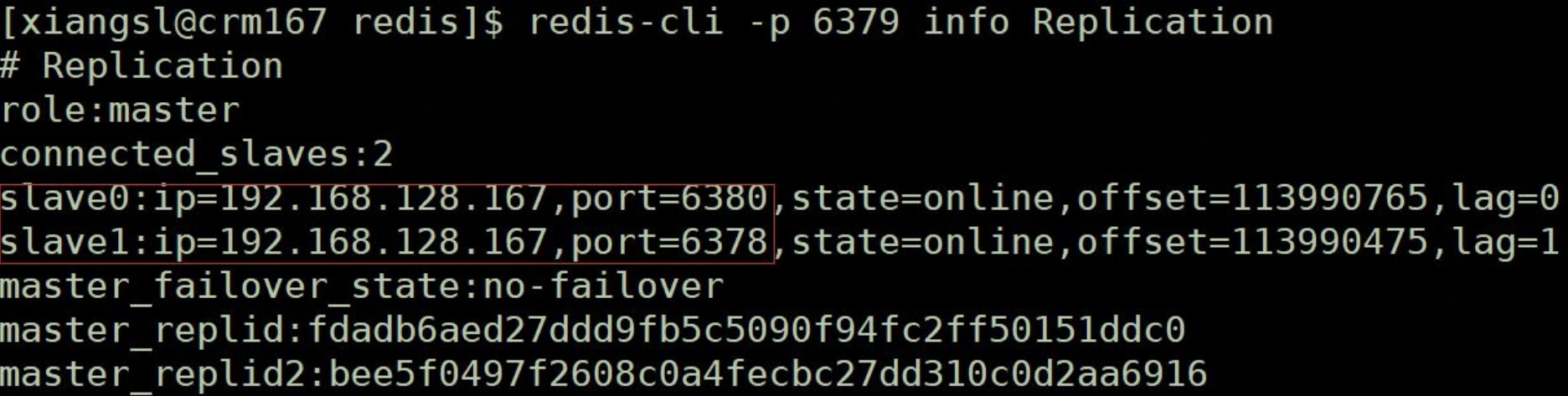 分别启动 192.168.128.167:6379,192.168.128.167:6380,连接 6380 端口,输入如下命令