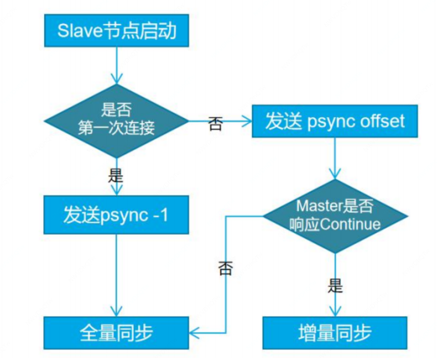 1. 当 slave 启动后或者断开重连后,slave 根据自己是否保存 Master runid 来判断是否是第一次连接