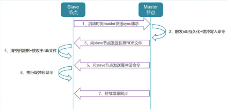 5. master 节点快照发送完毕、slave 节点载入快照完毕后,master 节点开始向 slave 节点发送缓冲区中的写命令