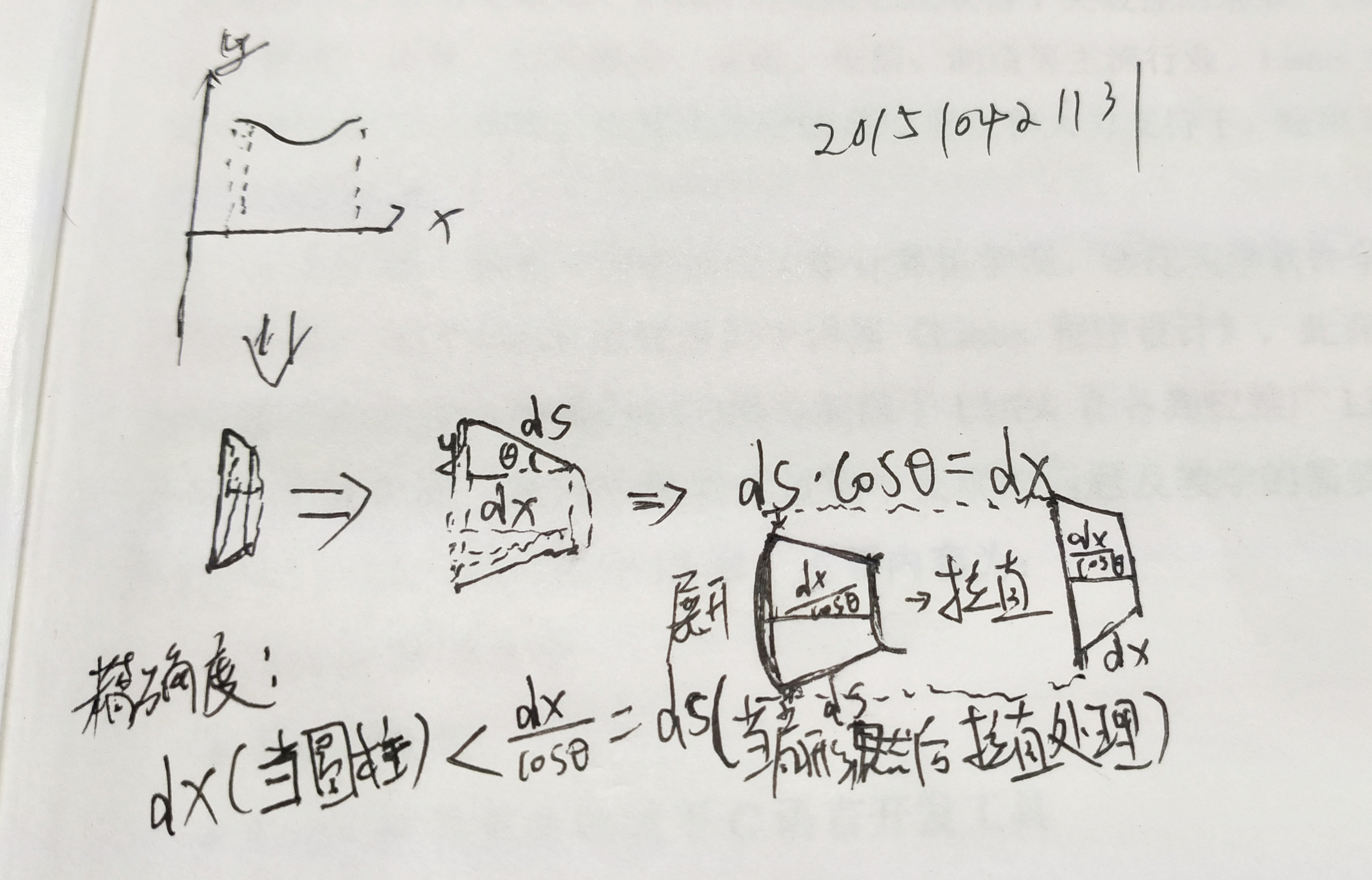 把dx当宽 作长方形 计算时 除了用ds计算本有的误差 还会多一个少乘一个cosa的误差