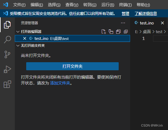 所以,一般选择打开VScode后,选择需要打开的文件夹,如下图:
