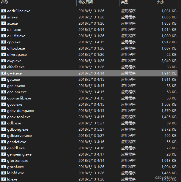 进入里面的bin文件,可以看到里面有g++.exe文件