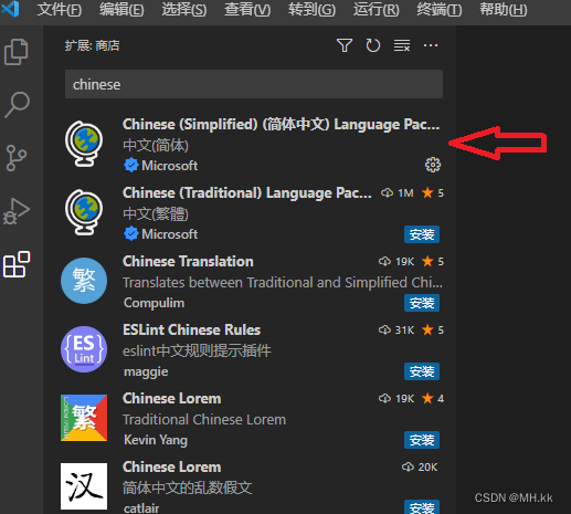 下载之后首先下载【chinese插件】然后退出重启VScode。