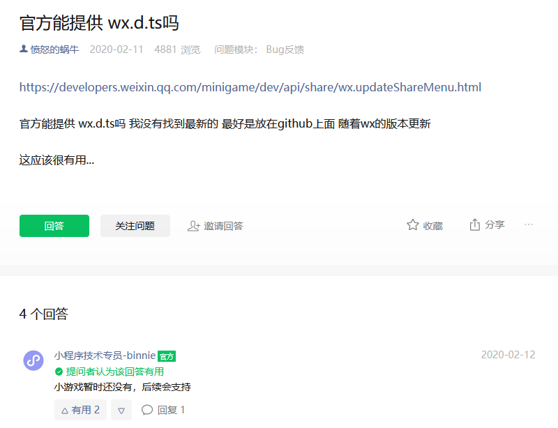 官方能提供 wx.d.ts吗 | 微信开放社区