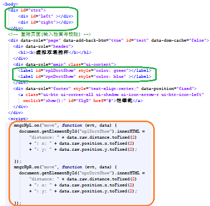 在且只能在onMove事件中获取,然后在添加的2个JQM页面label标签中展示。