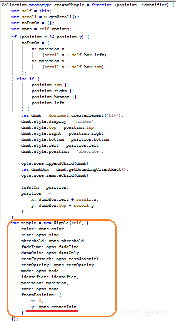 nipple源src中有raw的定义和toSend输出,打包应用nipple.js文件中没有,在此移植过来raw的定义,并在toSend展开进行具体赋值[nipple源src中toSend输出并没有做具体赋值]。