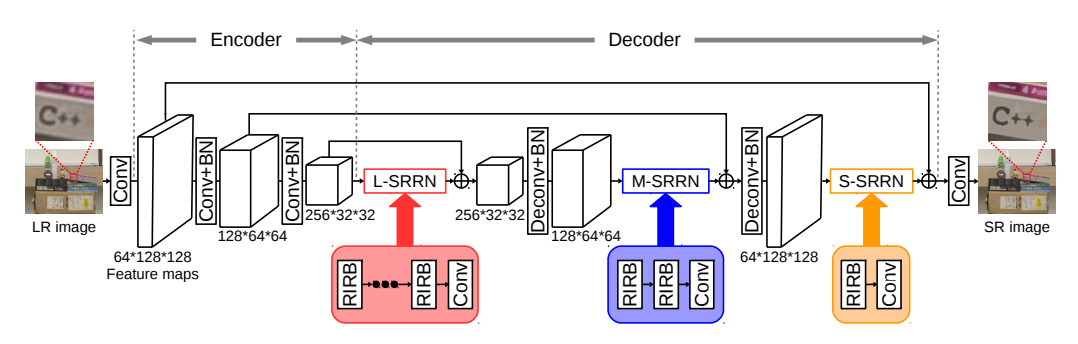 EDRN(Encoder-Decoder Residual Network)采用了编码解码的结构减小中间运算量,同时使用RIR(Residual in Residual)结构构建更深的残差网络,在内部残差中加入通道注意力机制,提升通道信息交互度。采用这种方法的结构其网络在超分过程中对高频信息的恢复表现得更加良好,其编码解码结构能够将更多得高频信息得到保留,虽然总体来说psnr值并不是特别理想。