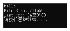 {printf("hello\n");fp = fopen("B3_3.0.50_0001C000_000ADBE8_343ED98D.bin", "rb");fseek(fp, 0L, SEEK_END);uint32_t size = ftell(fp);printf("File Size: %d\n", size);fseek(fp, 0, SEEK_SET);uint32_t init_crc = 0;for(uint32_t i = 0; i < size / 4096; i++){fread(buf, 1, 4096, fp);init_crc = CalcCrc32(init_crc ^ 0xffffffff, buf, 4096);}if(size % 4096 != 0){fread(buf, 1, size % 4096, fp);init_crc = CalcCrc32(init_crc ^ 0xffffffff, buf, size % 4096);}printf("last crc: %08X\n", init_crc);fclose(fp);system("pause");