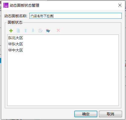 • 在“门店名称”动态面板各个状态下,编辑下拉框里需要显示的内容。每个状态里的下拉框大小一致。
