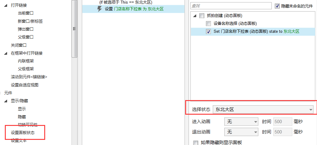 • 在“门店名称”下拉框上点击右键,选择“转换为动态面板”