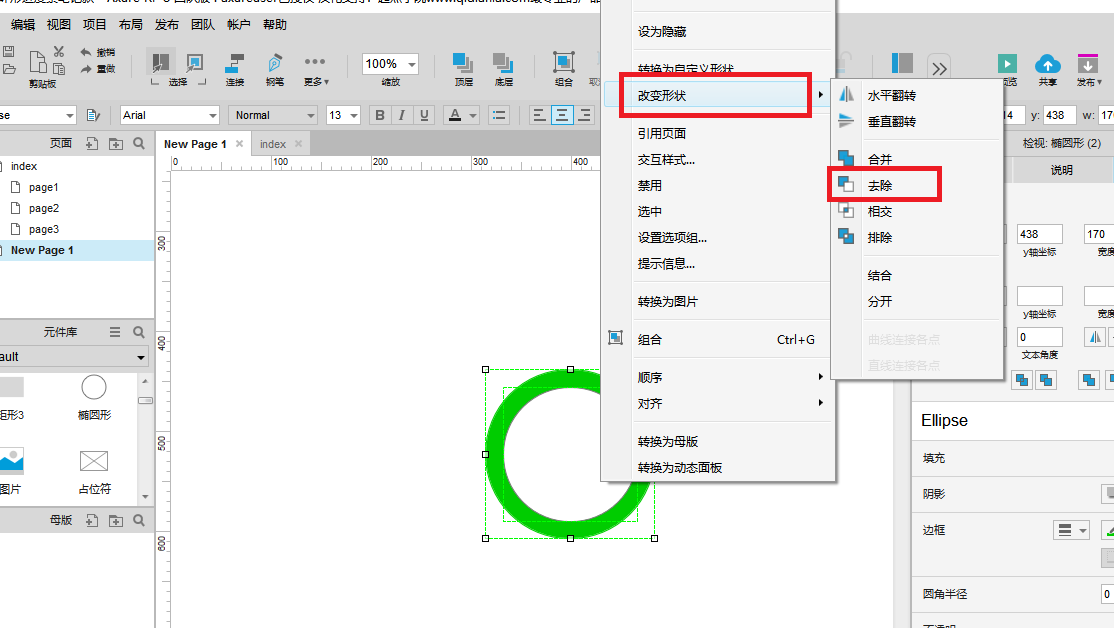 (5)获得半空心圆后,复制一个,然后右键->改变形状->水平翻转,得到另半边空心圆。