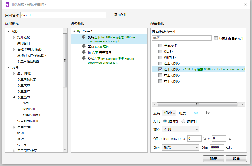 (1)左下环以右边为中心旋转180度,6秒钟,摇摆。