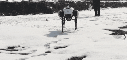 这样优异的平衡能力,在“绝影”年初的首秀中就已经有所体现了。彼时,“绝影”在打滑的冰天雪地中踉跄前行,姿态虽略有摇晃,却并未摔倒。