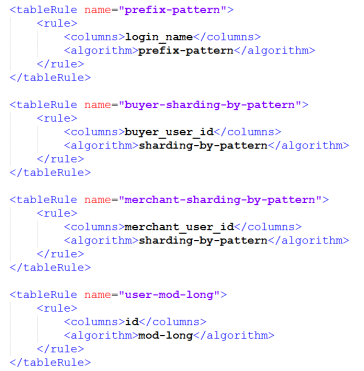表结构确定后,那就是分区算法的选择了,对用户信息表因为是id分片,所以我们直接用id取模就行,而登录表的分区字段是字符串,所以我们选择截取一部分字符串做hash求模。订单表,我们选择算法“取模范围约束”。