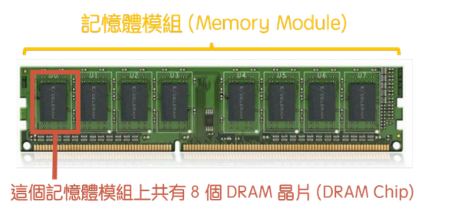 CPU 会给这个储存数组”行地址”和”列地址”,就可以选出一个”储存单元”。常见的储存单元包含了 4 bit 或 8 bit,每一个 bit 都会采用一个电路结构,我们称为 DRAM 的一个”基本储存单元”。