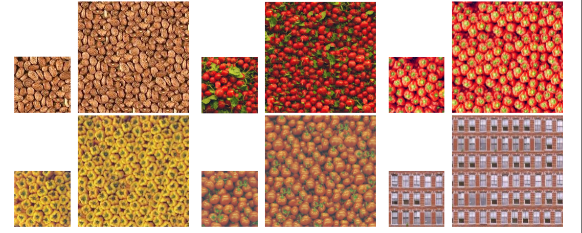(a):simply tile it with blocks taken randomly from (从输入图像的square blocks中随机选择一个block作为