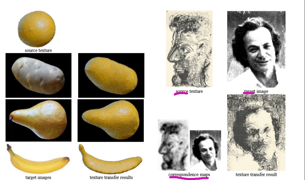 - Texture transfer-->rendering an object with a texture taken from a different object.(使用来着另外一个物体的纹理来呈现当前物体)