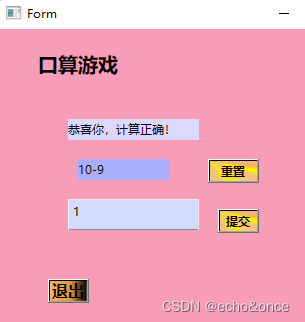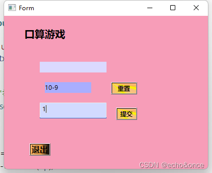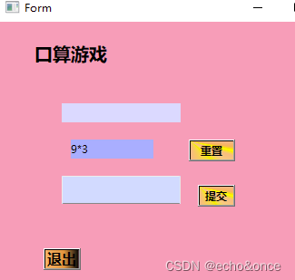 在中间框里面产生随机数,在提交框输入答案,在第一个框显示正确错误与否,点击重置,会清空之前数据,重新产生随机数