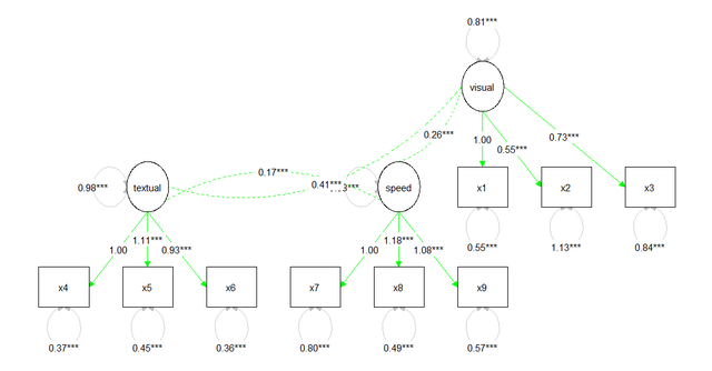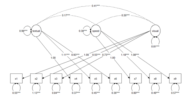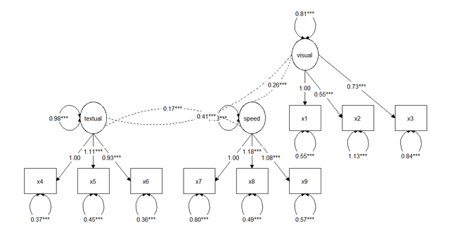 fit <- cfa(HS.model, data=HolzingerSwineford1939)