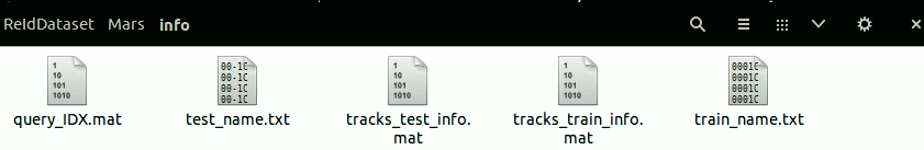 整个MARS数据的大小大概为6.3G,有两个文件夹bbox_train,bbox_test,同时还需要下载一个关于数据集信息的info文件夹,info文件夹不包含在原始数据集中,下载地址为: