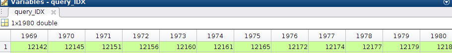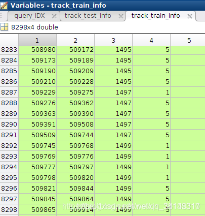 这个文件用matlab打开后可以看到是一个1 * 1980的矩阵,可以看到每一列是对应上面 tracks_test_info.mat文件中的第几行。