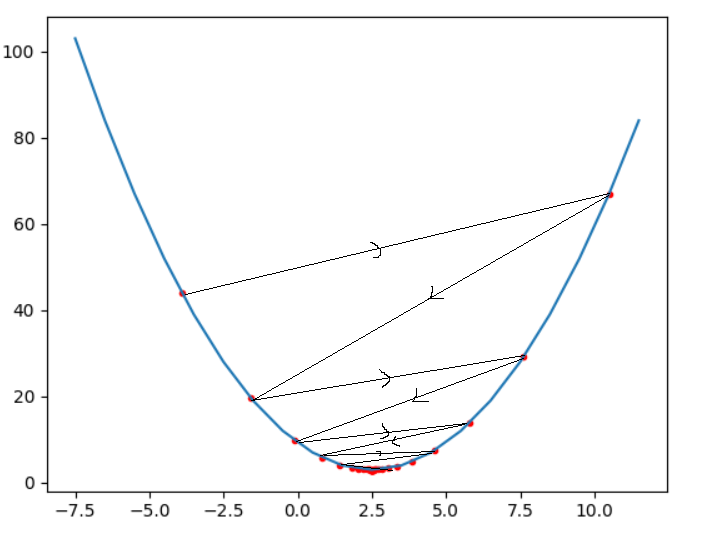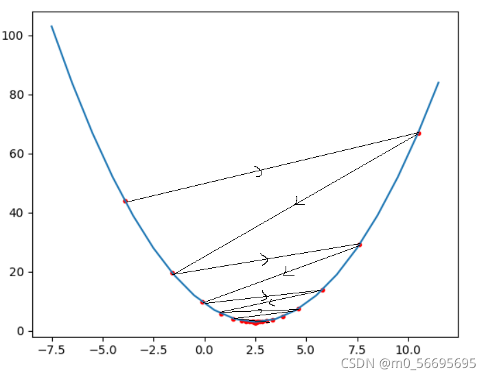 可以看出函数的点朝着极小值和导数绝对值小的方向移动