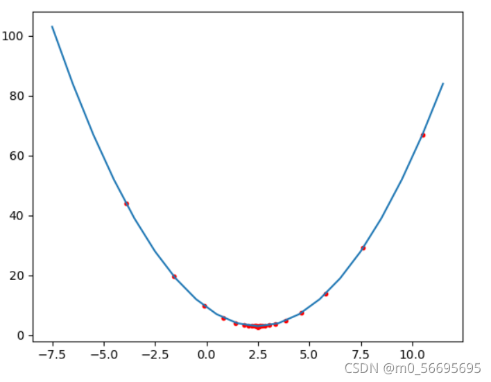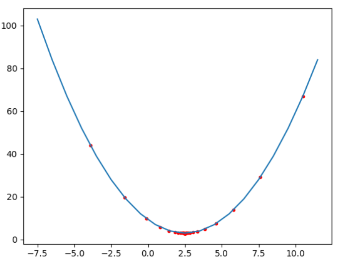 while 1:dy = df2(x)if abs(dy) < e: breakx = x - n*dyxs.append(x)