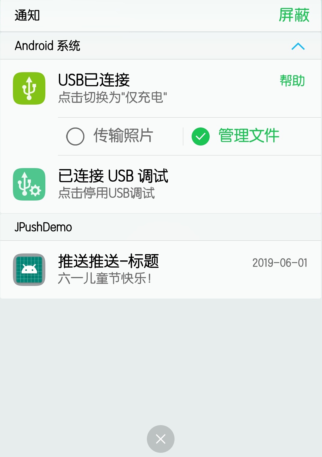public class MyJPushReceiver extends BroadcastReceiver {private static final String TAG = "MyJPushReceiver";public static String regId;@Overridepublic void onReceive(Context context, Intent intent) {Log.i(TAG, "[MyJPushReceiver] 广播被注册了");try {Bundle bundle = intent.getExtras();if (JPushInterface.ACTION_REGISTRATION_ID.equals(intent.getAction())) {regId = bundle.getString(JPushInterface.EXTRA_REGISTRATION_ID);Log.d(TAG, "[MyJPushReceiver] 接收Registration Id : " + regId);//send the Registration Id to your server...} else if (JPushInterface.ACTION_MESSAGE_RECEIVED.equals(intent.getAction())) {Log.d(TAG, "[MyJPushReceiver] 接收到推送下来的自定义消息(内容为): " + bundle.getString(JPushInterface.EXTRA_MESSAGE));// 自定义消息不是通知,默认不会被SDK展示到通知栏上,极光推送仅负责透传给SDK。其内容和展示形式完全由开发者自己定义。// 自定义消息主要用于应用的内部业务逻辑和特殊展示需求// 收到消息 显示通知processCustomMessage(context, bundle);} else if (JPushInterface.ACTION_NOTIFICATION_RECEIVED.equals(intent.getAction())) {Log.d(TAG, "[MyJPushReceiver] 接收到推送下来的通知");String extra_json = bundle.getString(JPushInterface.EXTRA_EXTRA);if (!TextUtils.isEmpty(extra_json))Log.d(TAG, "[MyJPushReceiver] 接收到推送下来的通知附加字段" + extra_json);// 可以利用附加字段来区别Notication,指定不同的动作,extra_json是个json字符串// 通知(Notification),指在手机的通知栏(状态栏)上会显示的一条通知信息} else if (JPushInterface.ACTION_NOTIFICATION_OPENED.equals(intent.getAction())) {Log.d(TAG, "[MyJPushReceiver] 用户点击打开了通知");// 在这里根据 JPushInterface.EXTRA_EXTRA(附加字段) 的内容处理代码,// 比如打开新的Activity, 打开一个网页等..//打开自定义的ActivityIntent i = new Intent(context, MainActivity.class);i.putExtras(bundle);//i.setFlags(Intent.FLAG_ACTIVITY_NEW_TASK);i.setFlags(Intent.FLAG_ACTIVITY_NEW_TASK | Intent.FLAG_ACTIVITY_CLEAR_TOP );context.startActivity(i);} else if (JPushInterface.ACTION_RICHPUSH_CALLBACK.equals(intent.getAction())) {Log.d(TAG, "[MyJPushReceiver] 用户收到到RICH PUSH CALLBACK: " + bundle.getString(JPushInterface.EXTRA_EXTRA));//在这里根据 JPushInterface.EXTRA_EXTRA 的内容处理代码,比如打开新的Activity, 打开一个网页等..} else if (JPushInterface.ACTION_CONNECTION_CHANGE.equals(intent.getAction())) {boolean connected = intent.getBooleanExtra(JPushInterface.EXTRA_CONNECTION_CHANGE, false);Log.w(TAG, "[MyJPushReceiver]" + intent.getAction() + " connected state change to " + connected);} else {Log.d(TAG, "[MyJPushReceiver] Unhandled intent - " + intent.getAction());}} catch (Exception e) {e.printStackTrace();}}/*** 处理自定义通告* @param context* @param bundle*/private void processCustomMessage(Context context, Bundle bundle) {String channelID = "1";String channelName = "channel_name";// 跳转的ActivityIntent intent = new Intent(context, MainActivity.class);intent.putExtras(bundle);intent.setFlags(Intent.FLAG_ACTIVITY_NEW_TASK | Intent.FLAG_ACTIVITY_CLEAR_TOP);PendingIntent pendingIntent = PendingIntent.getActivity(context, 0, intent, 0);// 获得系统推送的自定义消息String message = bundle.getString(JPushInterface.EXTRA_MESSAGE);NotificationManager notificationManager = (NotificationManager) context.getSystemService(NOTIFICATION_SERVICE);//适配安卓8.0的消息渠道if (Build.VERSION.SDK_INT >= Build.VERSION_CODES.O) {NotificationChannel channel = new NotificationChannel(channelID, channelName, NotificationManager.IMPORTANCE_HIGH);notificationManager.createNotificationChannel(channel);}NotificationCompat.Builder notification = new NotificationCompat.Builder(context, channelID);notification.setAutoCancel(true)//点击后消失.setContentText(message).setContentTitle("我是Title").setSmallIcon(R.mipmap.ic_launcher) //设置通知栏消息标题的头像.setDefaults(NotificationCompat.DEFAULT_ALL)//设置通知铃声,震动,闪光灯.setContentIntent(pendingIntent);notificationManager.notify((int)(System.currentTimeMillis()/1000), notification.build());}