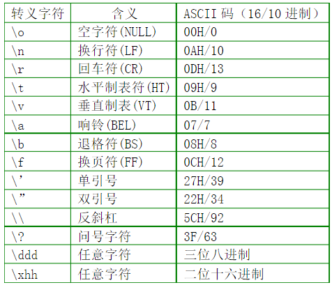 单引号括住一个字符,如‘A’,‘B’,或者是反斜杠开头的转义字符。如;'\n','\101','\0'