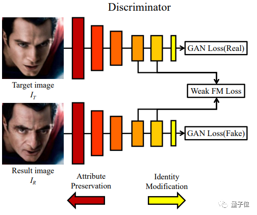 而SimSwap提出了一种弱特征匹配损失(Weak Feature Matching Loss),保证了输入目标和生成结果在高语义水平上的一致,并使判别器在最后几层计算特征匹配项。