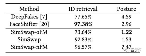 可以看到,虽然SimSwap在原特征表现上稍微落后,但涉及到脸部姿态这种复杂属性时,它的保存能力更好。