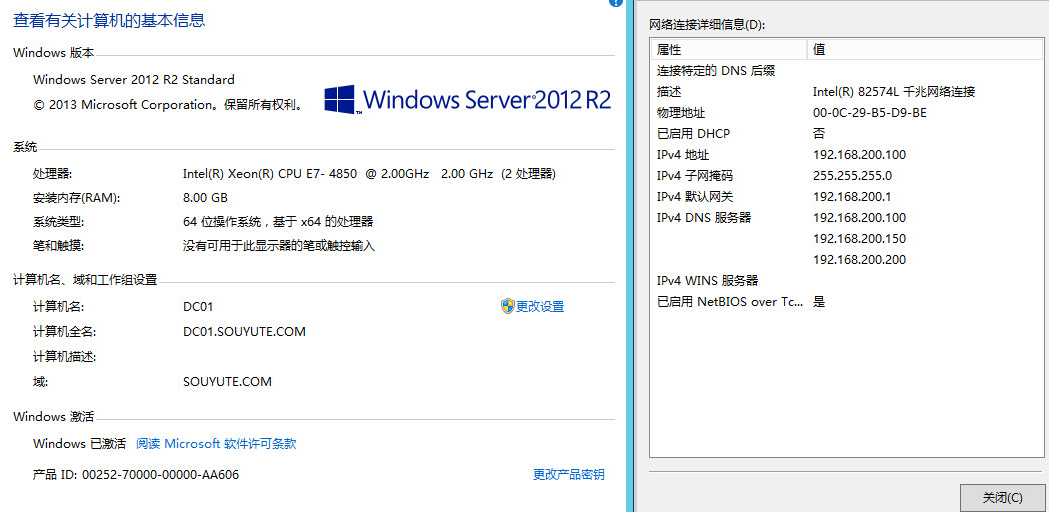 由三台Windows server2012组成的域控制器,实现域用户,IP,主备数据的同步,其中一台宕机不会影响用户正常访问域控制器。