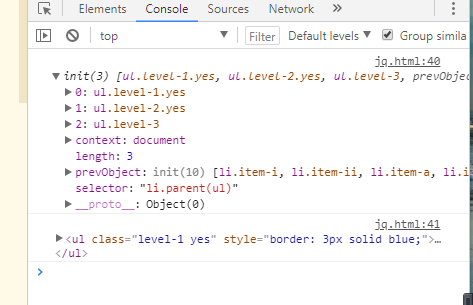 $("li.item-1").parentsUntil("ul.level-1").css("border", "3px solid blue"); var parents = $("li.item-1").parentsUntil("ul.level-1"); parents[0].css("border", "3px solid red");将数组中的元素包装后的效果:这里使用的是$(parents[0]).css()。